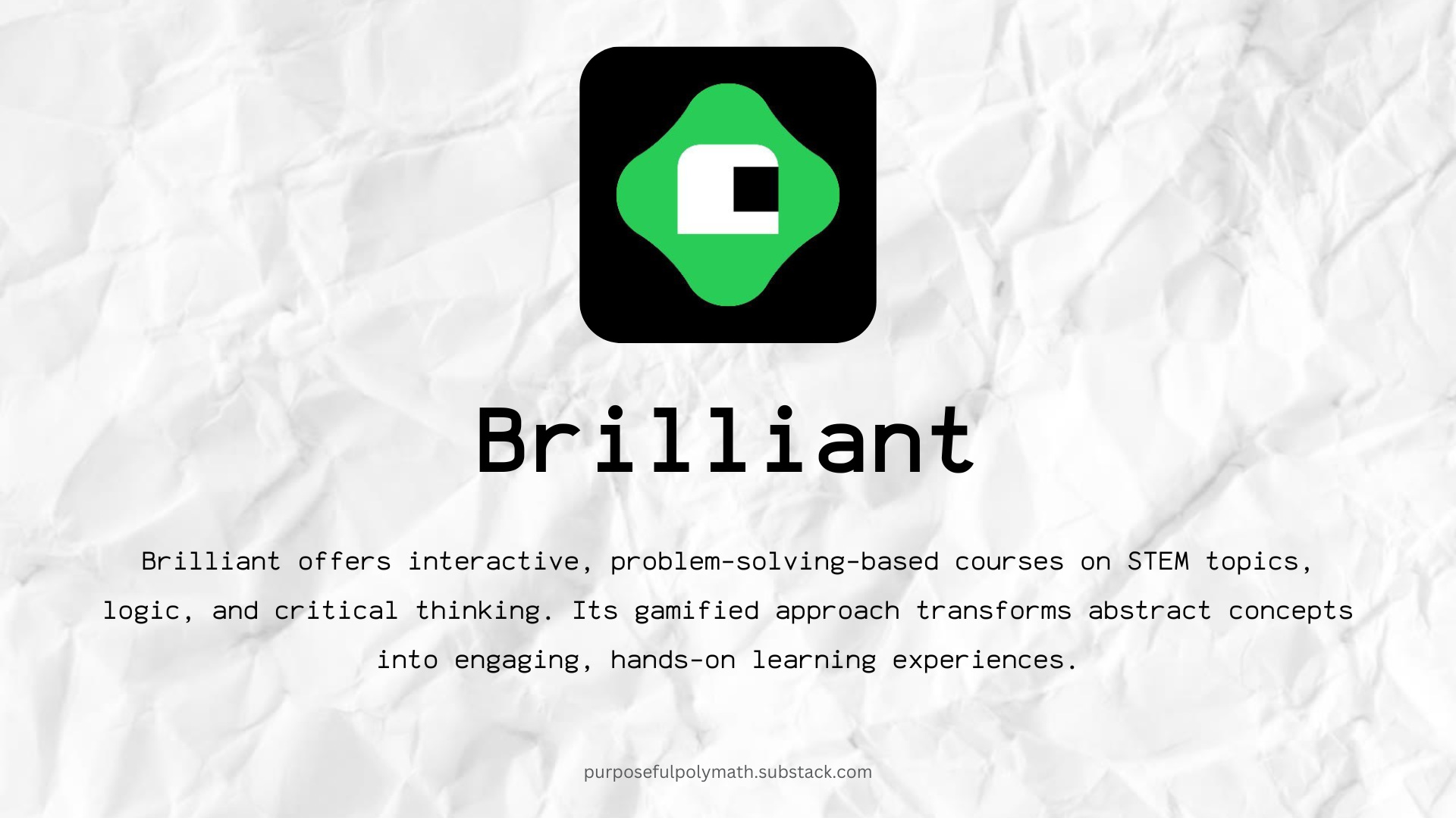 Brilliant offers interactive, bite-sized exercises that make complex topics approachable and engaging. I try to complete at least one exercise per day, though sometimes I get so immersed that I spend half an hour working through different topics. The platform aligns with my belief that small, consistent steps are more valuable than occasional deep dives.