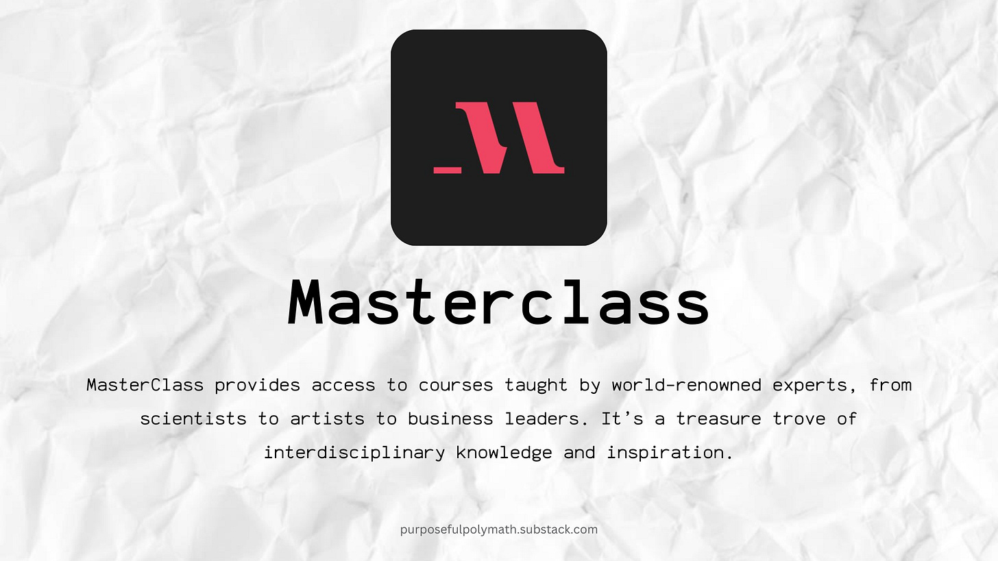 Inspiration for Creation: Polymaths thrive on connecting ideas across disciplines. MasterClass delivers a wealth of knowledge that can spark new ideas, projects, or collaborations.